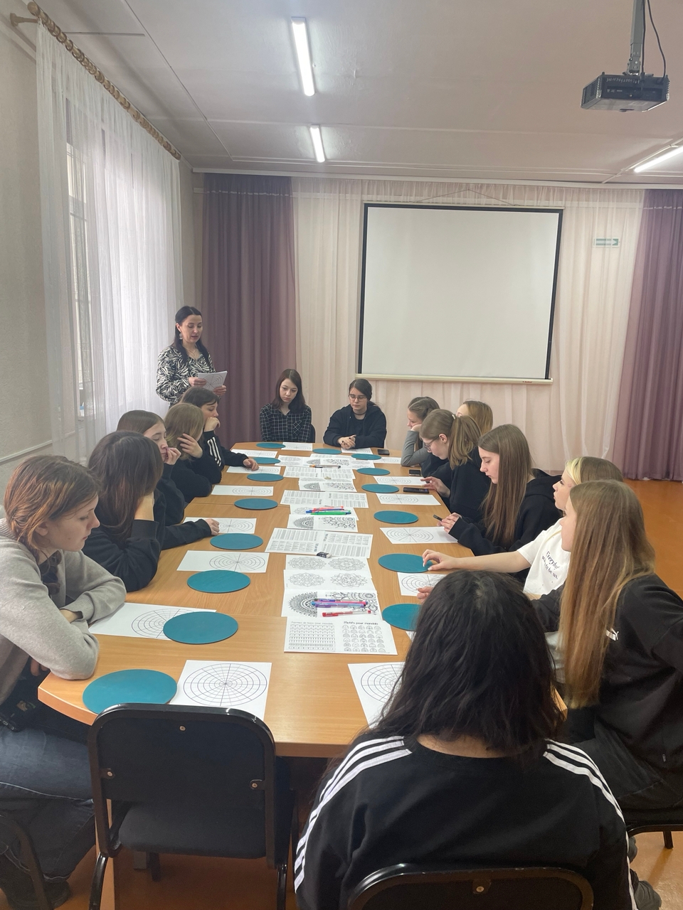 10 апреля в Центральной районной библиотеке прошло творческое занятие по рисованию мандалы. Русанова Татьяна Юрьевна, один из мастеров Арт-студии «Атмосфера», рассказала о методе мандалотерапии, о различных видах мандал и предоставила все необходимые материалы для творчества.