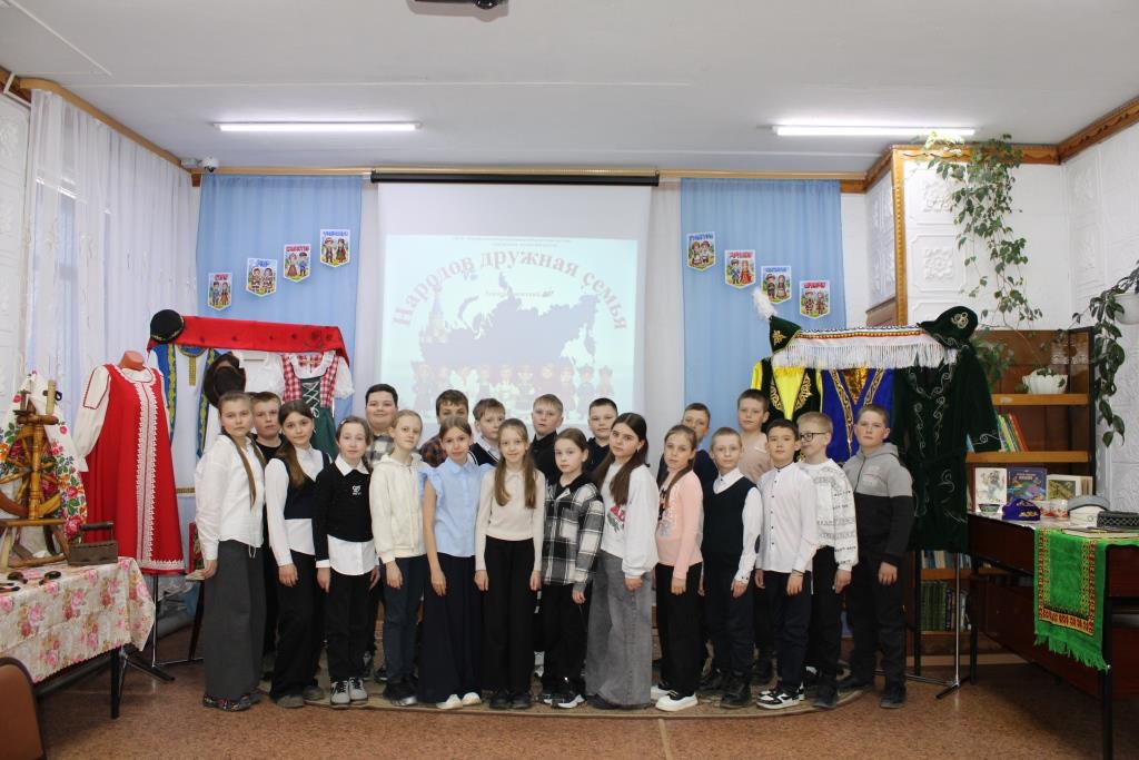 В Центральной детской библиотеке для обучающихся 4 «А» класса школы №2 проведен этнографический час «Народов дружная семья». Это мероприятие было организовано в рамках Года единства народов России. Участники узнали о ярких национальных костюмах, самобытных обычаях и уникальном укладе жизни русских, казахов, татар и немцев. Особое внимание было уделено тому, как важны дружба, взаимоуважение и единство в многонациональной стране. Дети с азартом сыграли в русскую народную игру "Ручеёк", с интересом слушали звучание домбры и гуслей, а также с энтузиазмом разучивали движения татарского танца. Ведущие подчеркнули, почему так важно беречь культурное наследие и уважать представителей разных народов. В рамках мероприятия была организована книжная выставка "Год единства народов России". А завершился праздник в уютной "Чайной", где ребята смогли попробовать национальные угощения: русские блины, татарский чак-чак, казахские баурсаки, немецкий пирог кухен и дагестанский ботлихский пирог. Этот день наглядно показал детям, что, несмотря на различия в языках и обычаях, всех нас объединяют доброта, дружба и уважение. Фотографии мероприятия можно посмотреть в "Одноклассниках" или "ВК" в альбоме "Этнографический час "Народов дружная семья".